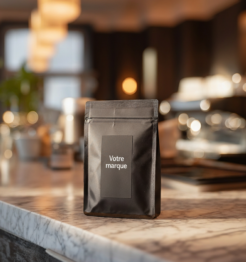 Valorisez votre établissement avec un café en marque blanche, personnalisé à votre nom.